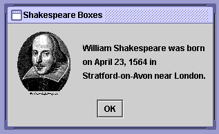 Reference: In chapter 20 we will show how to construct quite complex dialogs and assume knowledge of the JDialog information presented here. We suggest supplementing this chapter’s material with a brief look at the chapter 20 examples to get a feel for what lies ahead.